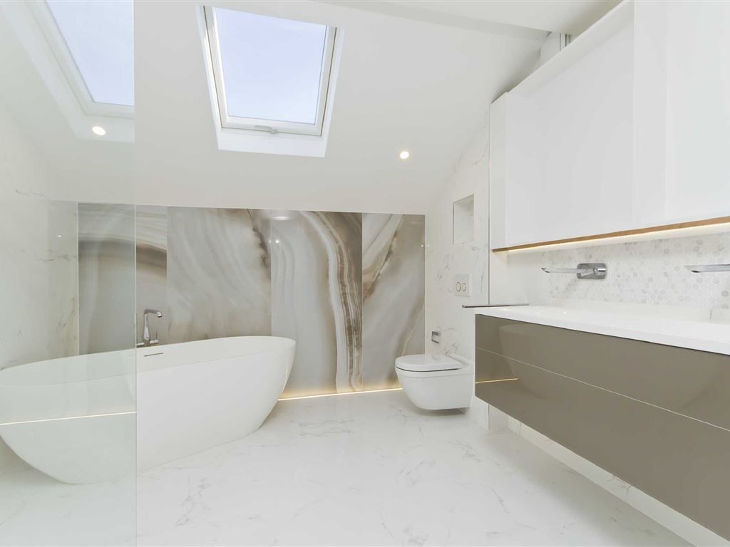 Blending elegant design with exceptional space, this beautifully crafted family home sits on a wide, tree-lined street in the Queens Park/Willesden Green area, offering contemporary living across three floors and approximately 2,818 sq ft.The ground floor is designed for modern family life, flowing seamlessly from a welcoming reception room into a stunning open-plan kitchen and dining space. Full-width doors open onto a beautifully landscaped rear garden perfect for entertaining or relaxing. A practical utility room and guest WC complete this level. Upstairs, four bright and spacious bedrooms are complemented by a stylish family bathroom and four elegant en suites. The impressive principal suite occupies the entire top floor, featuring floor-to-ceiling windows with garden views, a luxurious en suite, and a bespoke walk-in wardrobe. Additional highlights include a private roof terrace, off-street parking for two cars, and a thoughtfully designed rear garden.Alverstone Road lies on the edge of the desirable Brondesbury Park area, within easy reach of Willesden Green Underground Station (Jubilee Line) and the independent shops, cafés, and amenities of Walm Lane. The home is also ideally positioned for access to some of North West Londons finest private and state schools, including those in Notting Hill, North Kensington, St Johns Wood, and Hampstead.