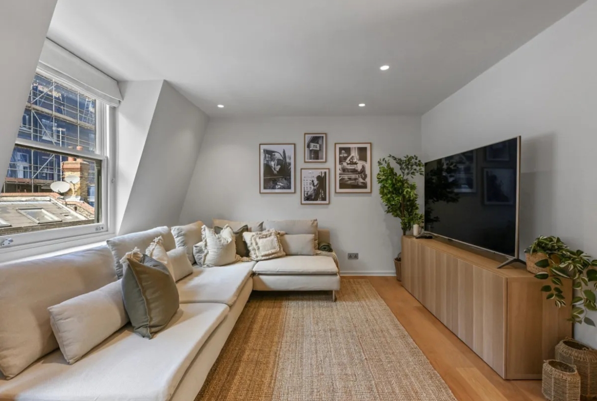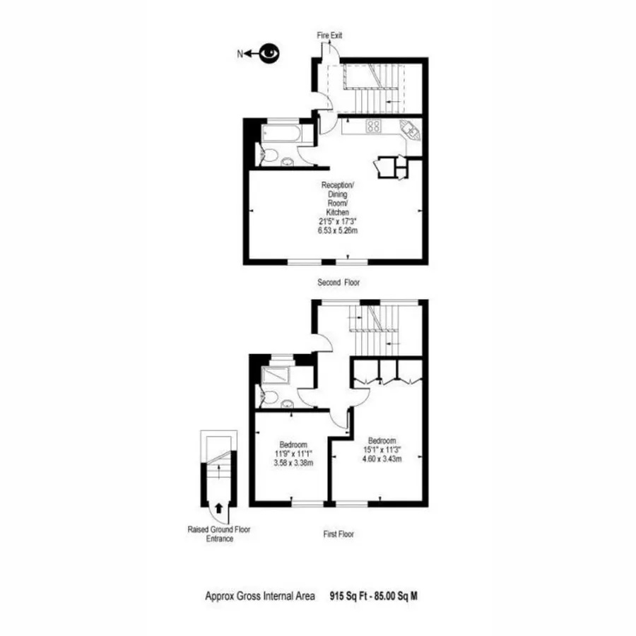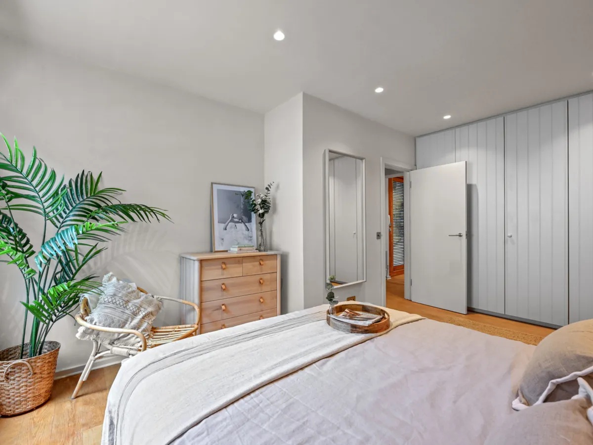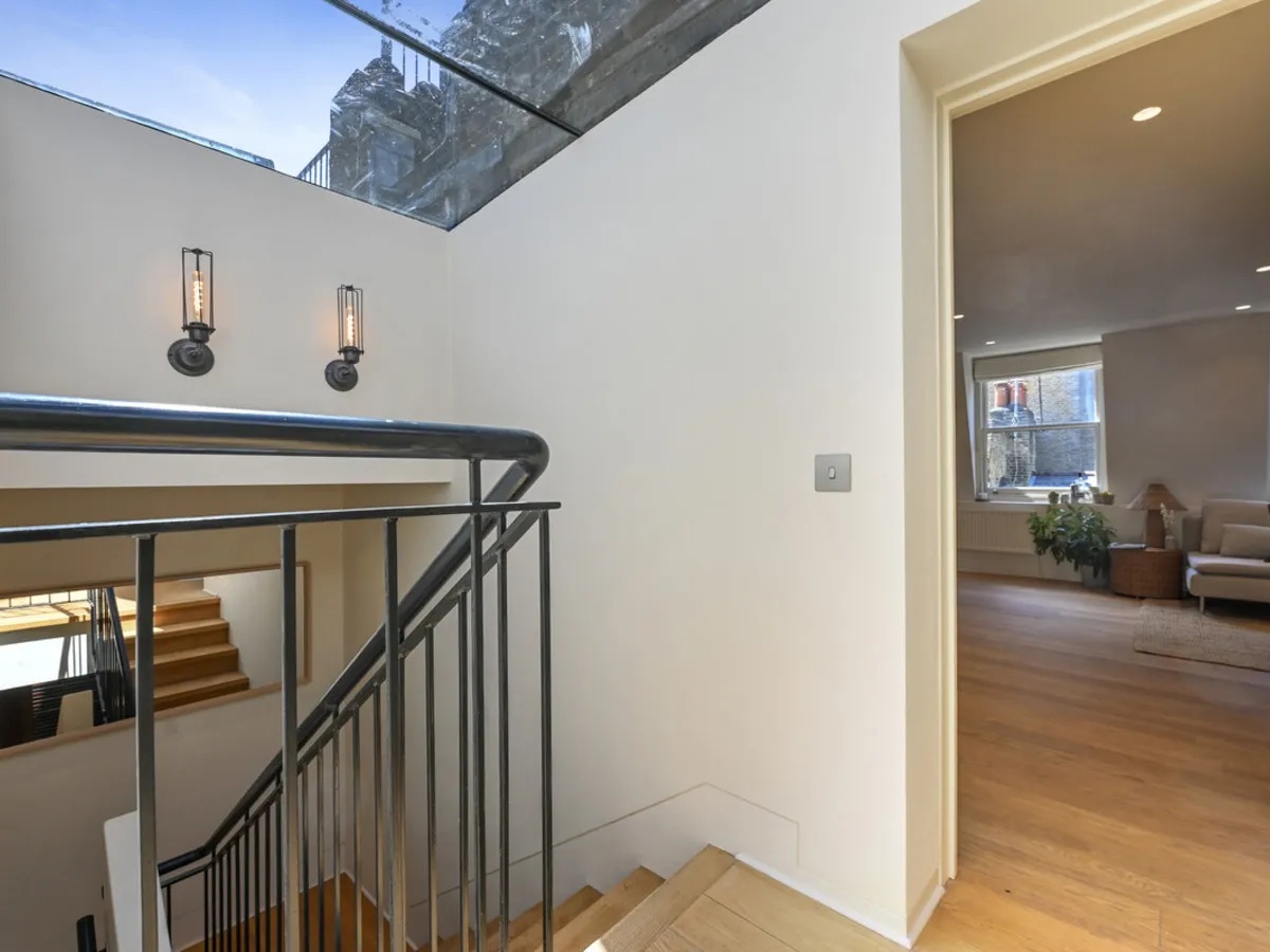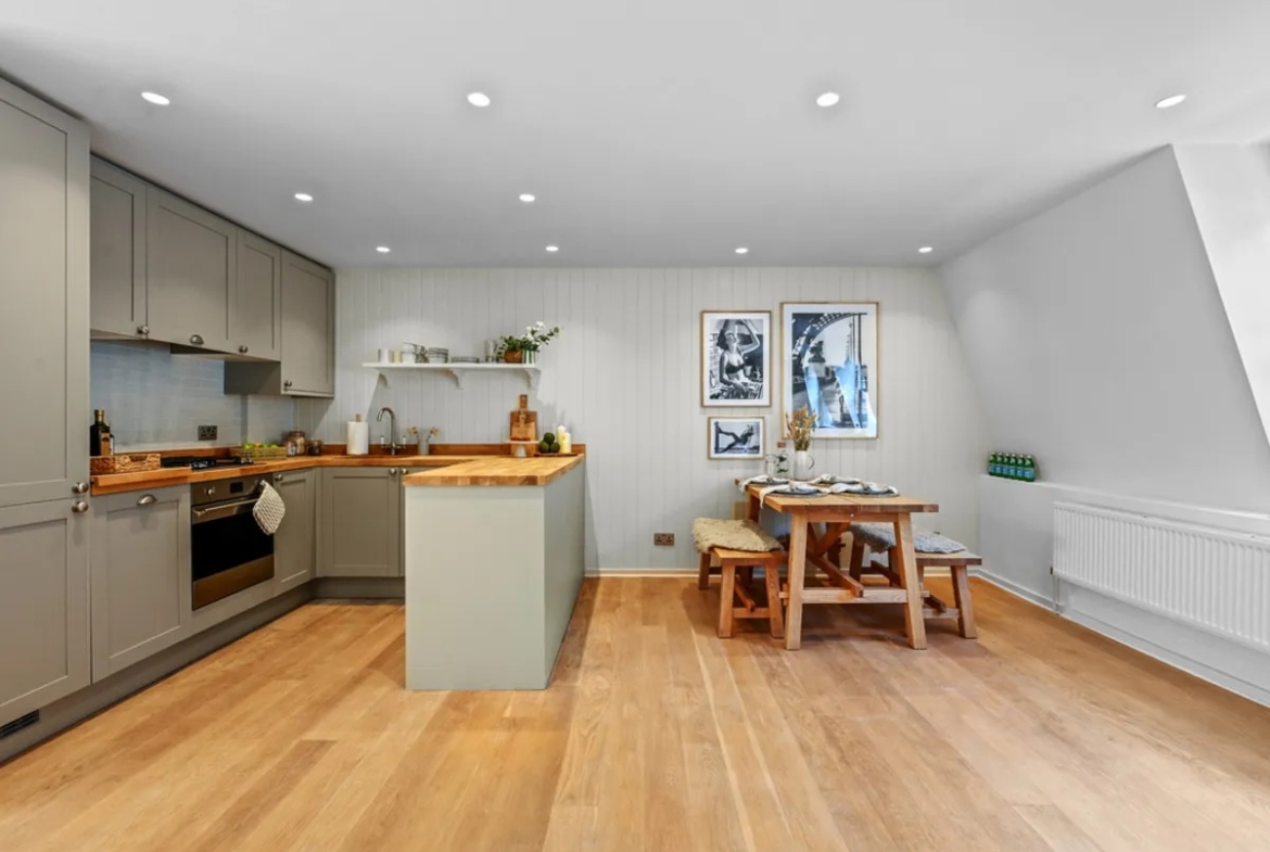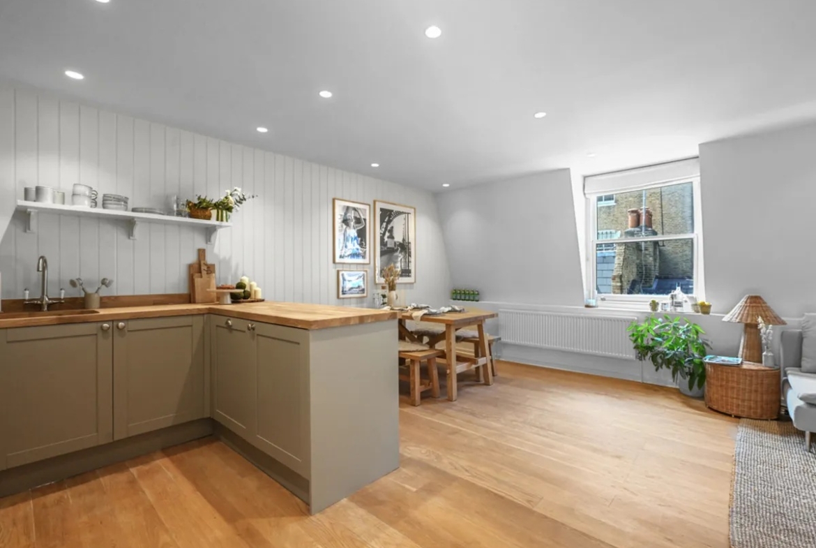 Occupying the top floor is a spacious open-plan kitchen and reception room, filled with natural light thanks to large windows and offering plenty of space for dining and entertaining.The lower level features two well-sized double bedrooms, both with built-in storage, along with two sleek, contemporary bathrooms one of which is en suite.
