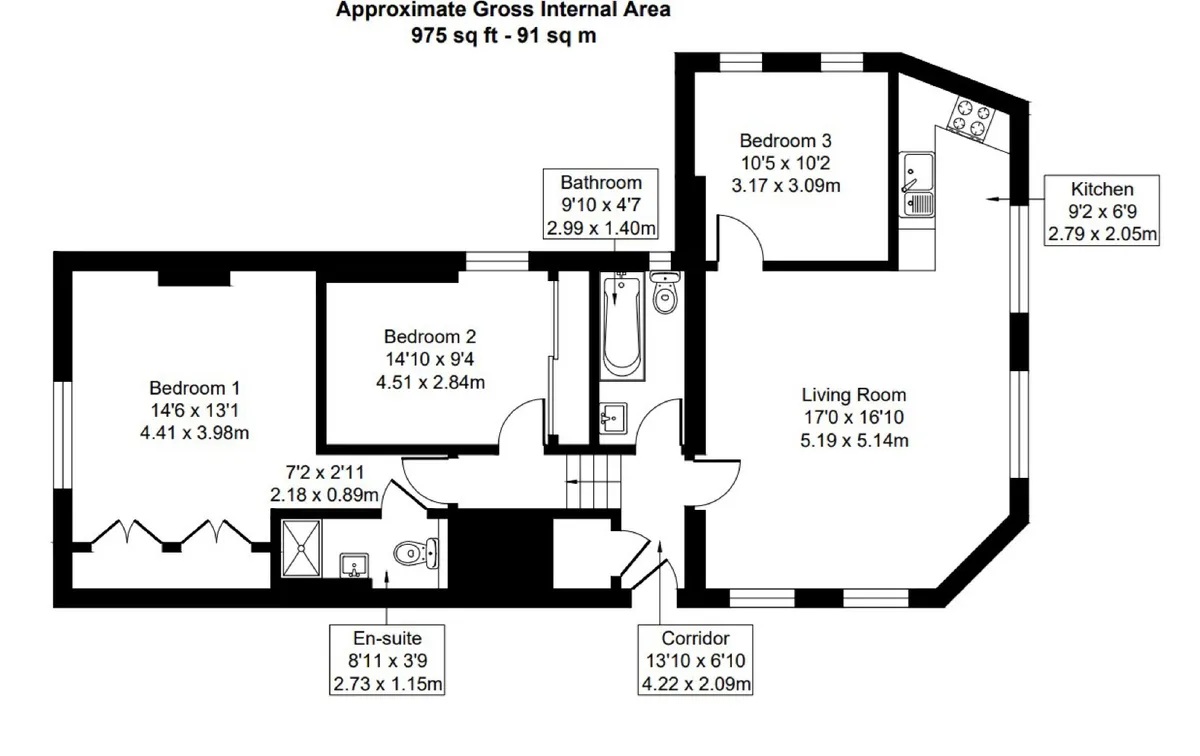 The property comprises a large living room with hard wood floors, a semi open plan kitchen, a large master bedroom with en-suite, two further large double bedrooms, and a family bathroom.