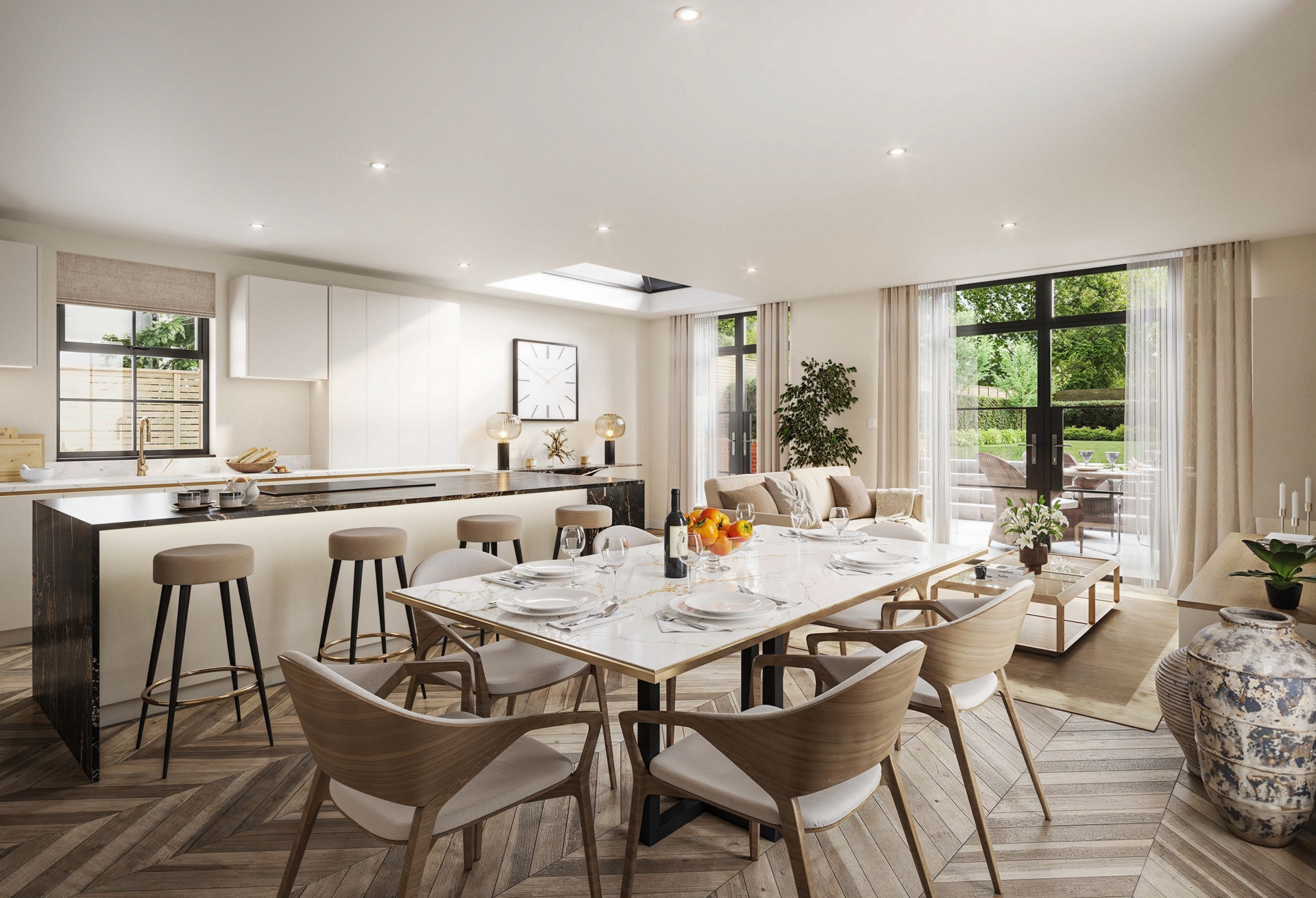 Each property extends to over 2,200 sq. ft. and offers versatile layouts to suit family life, featuring five bedrooms (or four plus a dedicated study), and two elegant reception rooms designed for both entertaining and everyday comfort. The heart of the home centres around a beautifully appointed kitchen/dining area, seamlessly connecting to private gardens that are perfect for outdoor living. Upstairs, the principal bedroom benefits from an en suite, with additional bedrooms providing ample space for family and guests. Thoughtfully proportioned interiors ensure flexibility, whether working from home or accommodating a growing household.