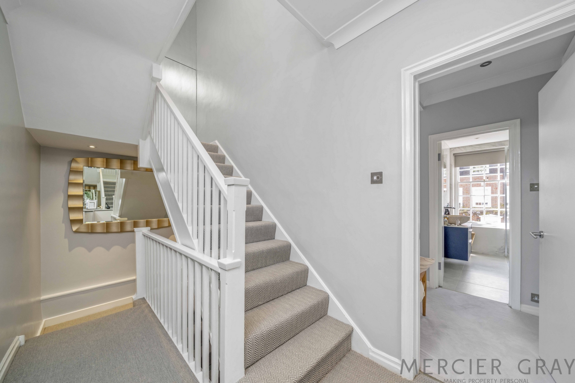 This stylishly 2,200 sqft renovated five-bedroom house is located on a peaceful private road, just a short walk from the scenic Primrose Hill Park and the nearby conveniences of Regents Park Road.