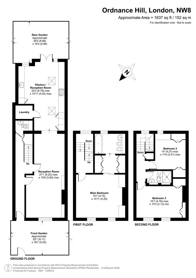 The property features a refined double reception room with classic proportions and an abundance of natural light, alongside a spacious kitchen designed to suit both everyday living and entertaining. The upper floors host a bright and well-appointed principal bedroom suite with ample storage, complemented by two further bedrooms and additional bathrooms, offering flexible accommodation ideal for families or guests. With its attractive façade, well-balanced layout, and prime position in St Johns Wood, this home presents a rare opportunity to acquire a property of character and substance in one of Londons most desirable residential areas. Ordnance Hill is a quiet and highly regarded address in the heart of St Johns Wood (NW8), known for its village-like feel, elegant architecture, and close proximity to Central London.