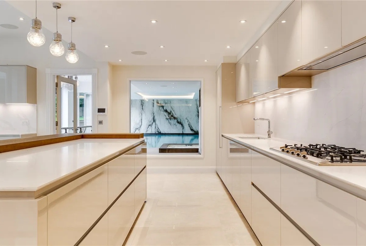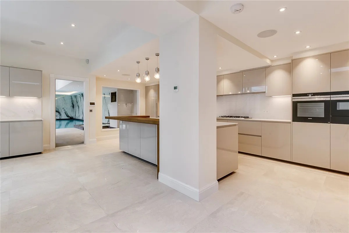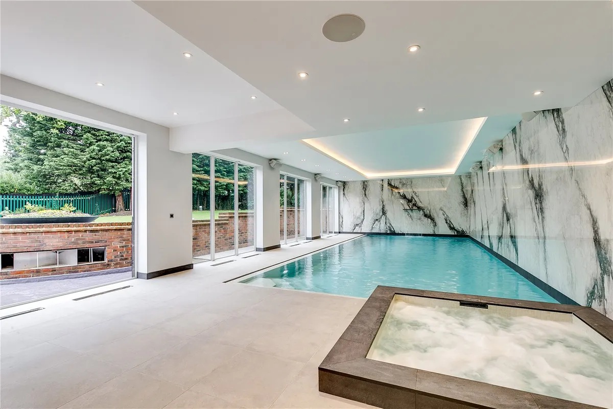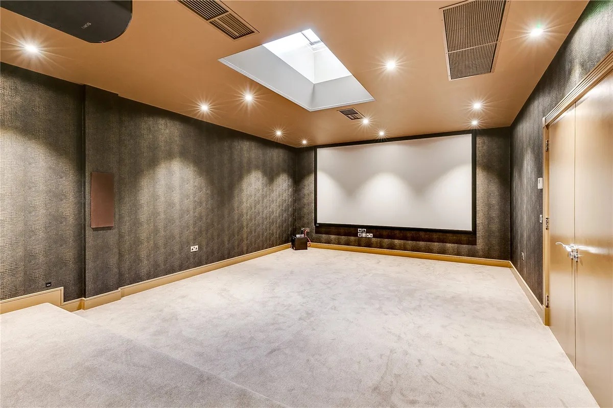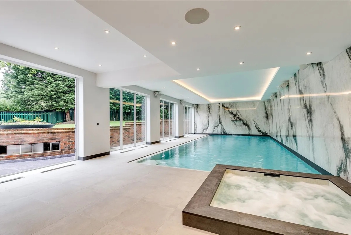 Created with both family living and grand entertaining in mind, the property boasts a series of light-filled reception rooms and a sophisticated kitchen complete with integrated appliances and a stylish breakfast island. A dedicated leisure level on the lower ground floor offers the ultimate in luxury lifestyle amenities, including an indoor swimming pool, Jacuzzi, sauna, fully equipped gym, and a private cinema.The principal suite is a sanctuary in itself, featuring an expansive en-suite bathroom and bespoke dressing areas, while each additional bedroom has been individually designed to combine comfort with style.Further highlights include a striking entrance hall with soaring double-height ceilings, landscaped gardens with patio for outdoor dining, and secure off-street parking behind electric gates.