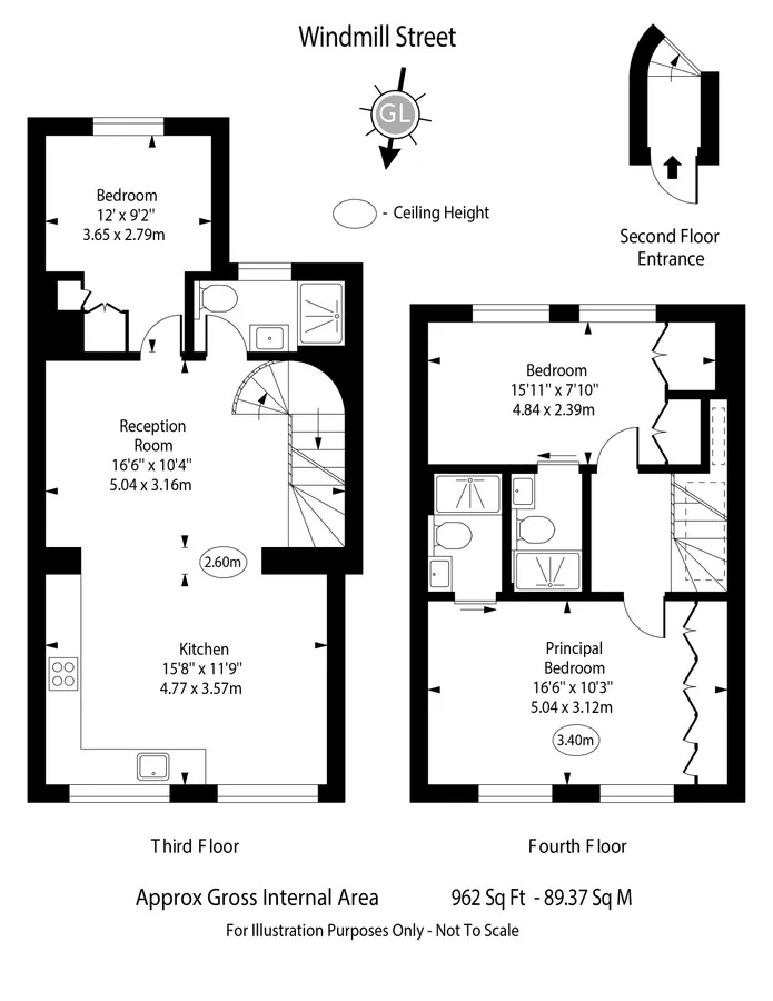 A top floor of a beautifully refurbished period building, this exceptional three-bedroom, three-bathroom apartment on Windmill Street perfectly captures the essence of contemporary London living.
