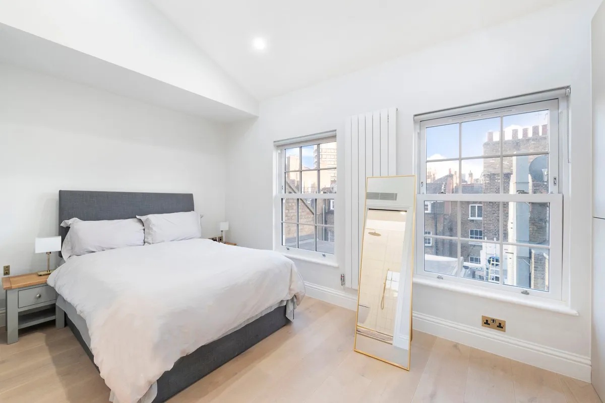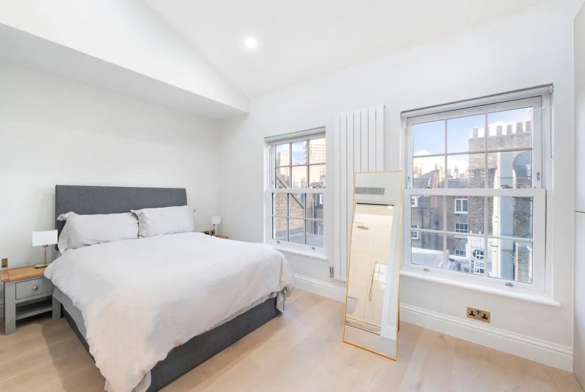 Occupying the top floor of a beautifully refurbished period building, this exceptional three-bedroom, three-bathroom apartment on Windmill Street perfectly captures the essence of contemporary London living.