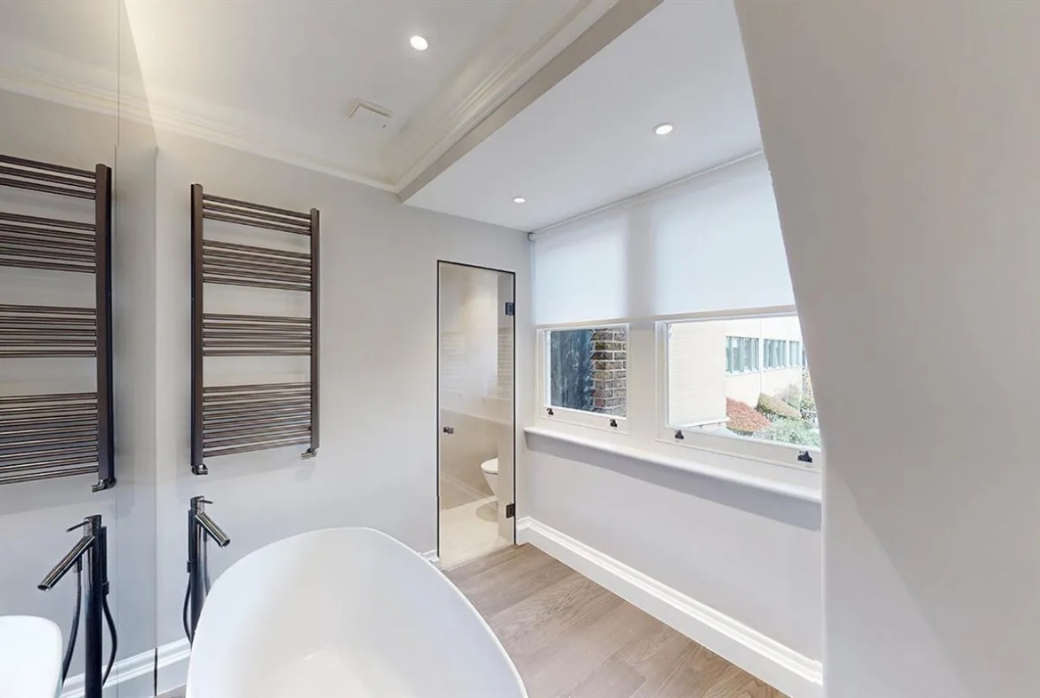 A brand-newly refurbished two-bedroom, two-bathroom duplex apartment set within a stunning period building in the heart of Kensington.